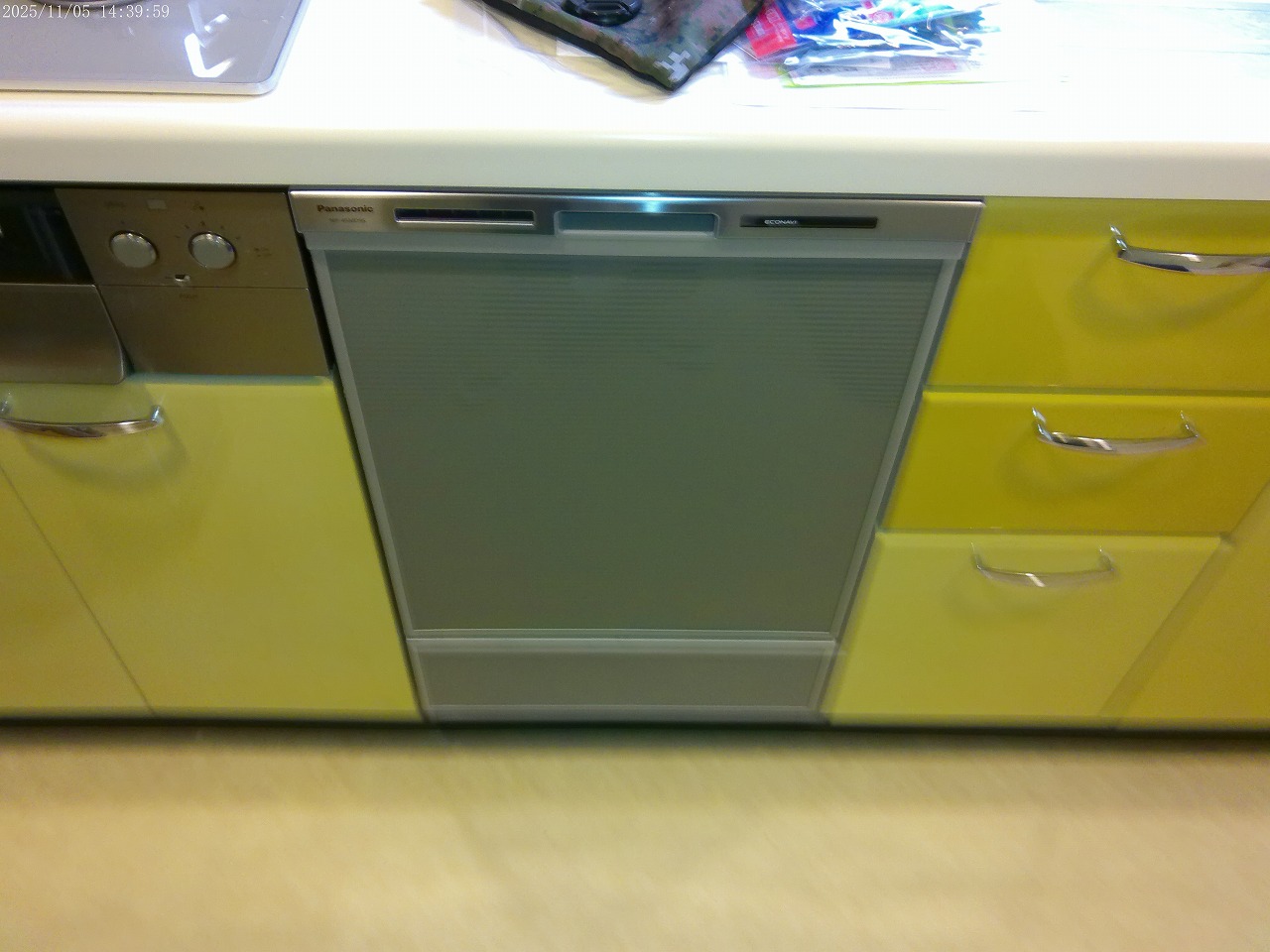 NP-P45R1PSからPanasonic製食器洗い乾燥機NP-45MD9Sへの交換工事 下部収納撤去でディープタイプを設置