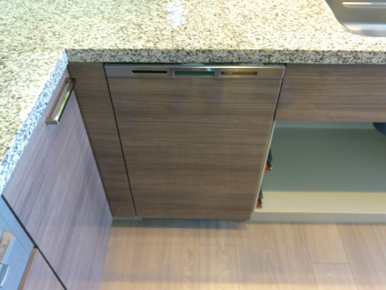 既設食洗機が「足元ストッカー」(収納部)上に設置されている場合、